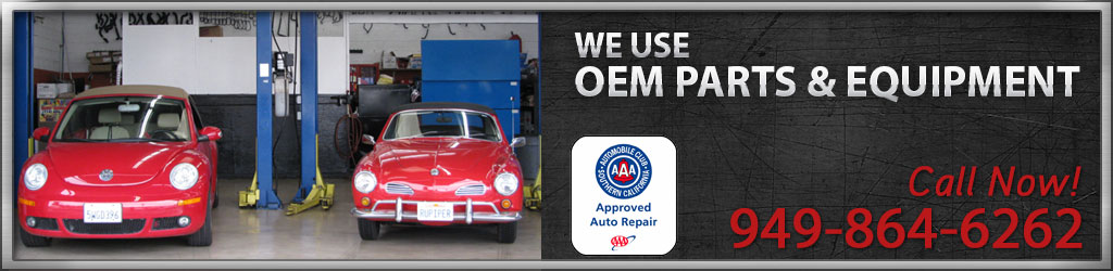 (949) 864-6262 For Volkswagen maintenance that is unparalleled in the Irvine CA area, make sure to stop in and see the professional team at Irvine VW Repair. VW is a German manufacturer that has its origins dating all the way back to the 1930's. From classic Beetles to the more upscale Passat, our ASE Master Certified Technicians are able to expertly service your vehicle. In fact, when you come in for a quick oil change we will make sure to do a thorough bumper-to-bumper check on the remaining systems in your vehicle, making sure that there are no major problems. If we find any persisting issues we will make sure to seal our workmanship with a staggering 3-Year/36,000 Mile Warranty on most repairs. In this economy this is more than you will find with our competitors and should give you peace of mind in choosing our services. With everything from VW brake repair knowledge to routine tire rotation services we will be able to provide exactly what your car needs. Call (949) 864-6262 today to organize an appointment that fits your schedule.